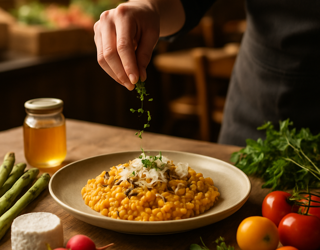 Unsere Köche nutzen Techniken, die die Zutaten respektieren: blanchieren, kurzes Schwenken, sanftes Niedriggaren oder Fermentation. So bleiben Aromen erhalten, und die Textur stimmt. Ein Beispiel: frischer Spargel wird bei uns nur kurz gedünstet, nie zerschreddert; so bleibt die Struktur erhalten.