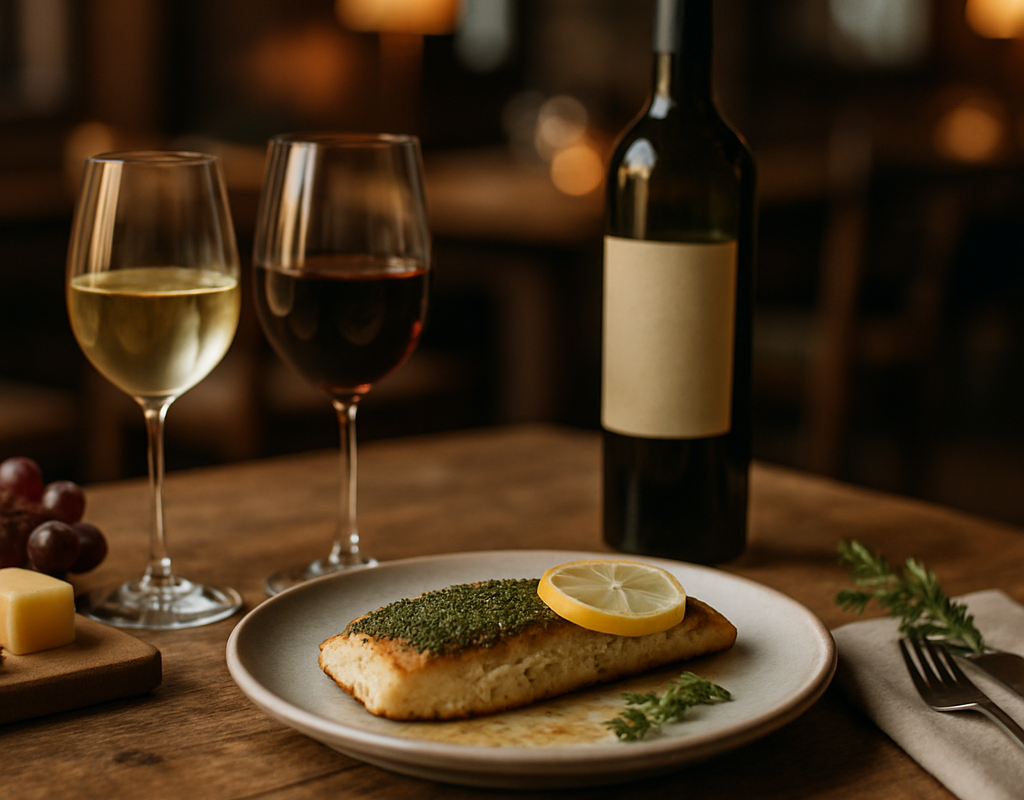 - Gedämpfter Saibling mit Kräuterkruste → Grauburgunder; ergänzt die Kräuter und die zarte Textur des Fisches. Ein Hauch von Rauch im Wein kann Röstnoten im Gericht betonen.